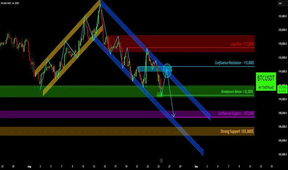 - Resistance Awaiting Retest: Price action suggests a potential retest of the Confluence Resistance around 115,000$, which aligns with the upper boundary of this bearish channel, an area that has previously faced rejection.