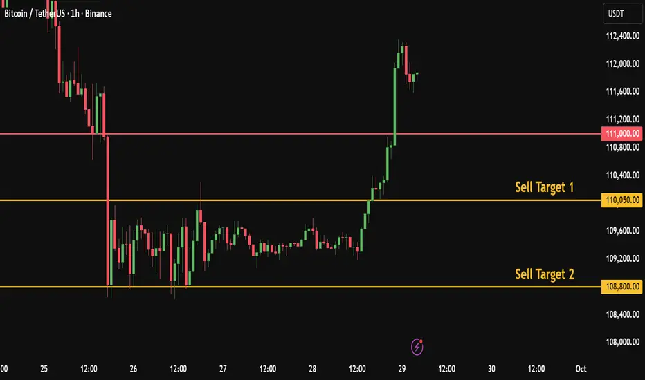 If price breaks and closes a 1H candle below 111K, I will enter a short trade.