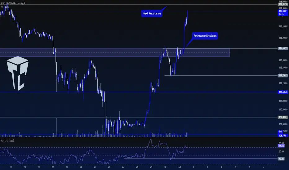 💥 The RSI oscillator has also entered the Overbuy zone, and the market momentum is fully bullish. The next resistance we have is at 117812.