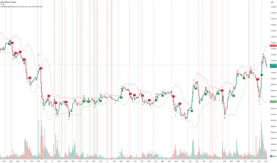 📊 In the example above (BTCUSDT, 15m), you can see how signals align with both momentum-driven moves and intraday reversals.