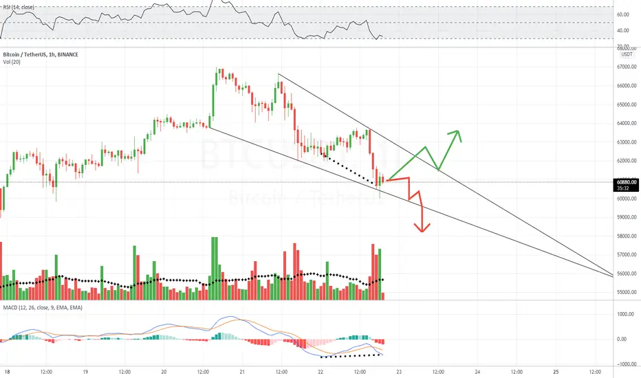 Bitcoin has had a -10% correction now. I think it is time to enter a long and get more bullish on it again. This is because it is forming a bullish pattern + bullish divergences on multiple timeframes.