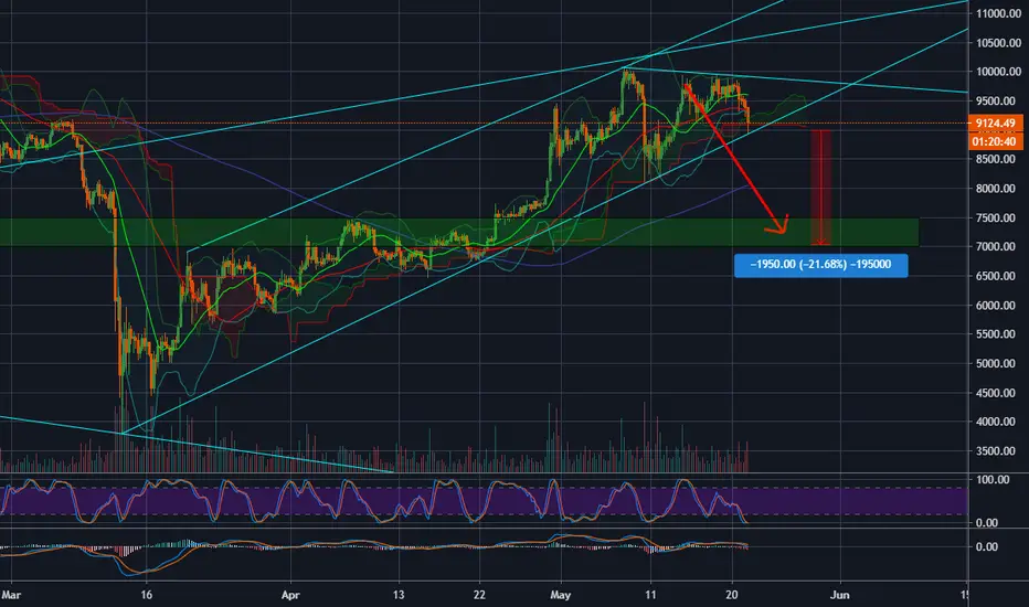 BTC has follow the rising wedge pattern too long and now it has big chance to drop from this pattern.