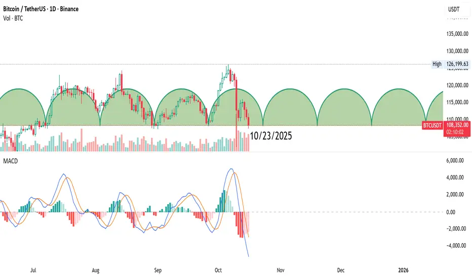 The daily trading cycle will start again around 10/23. After that wave, I am seeing a bear market coming, unless it creates new highs in both prices and MACD.
