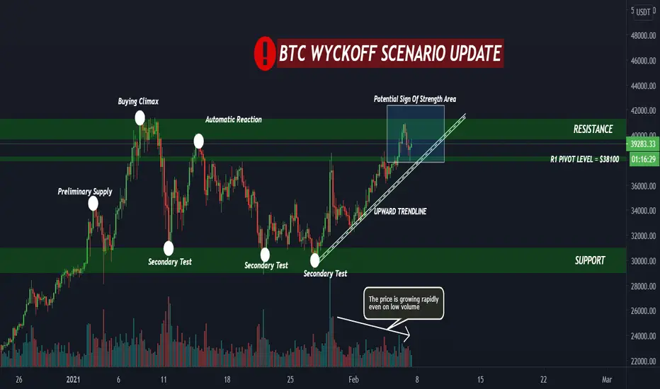 Now we can see the price is in range between R1 pivot and the resistance levels. It looks like the sign of strength is forming. If the level of $38100 acts as a strong support we can see the further massive growth according to Wyckoff reaccumulation.
