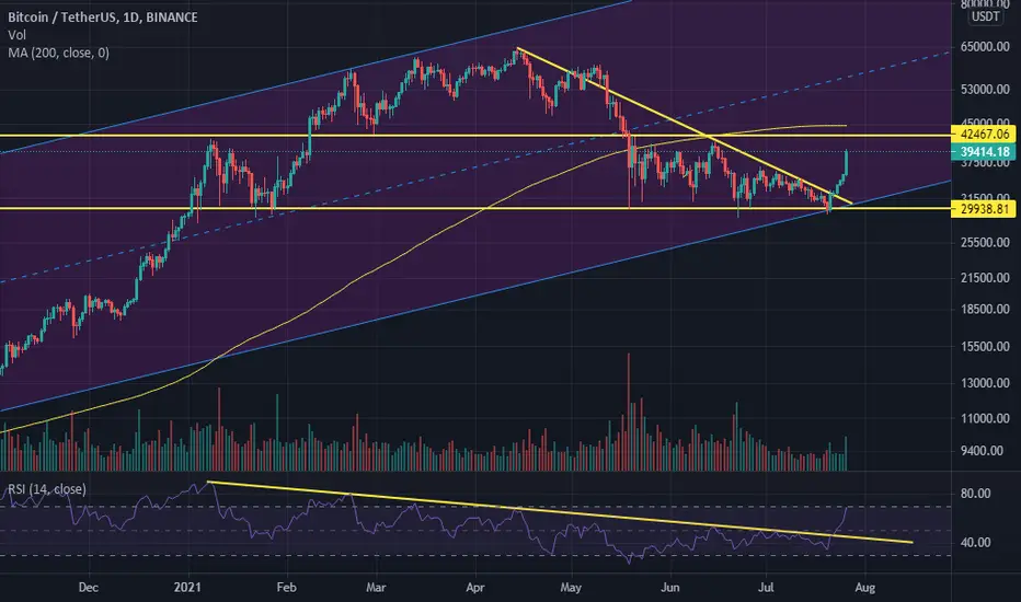 downward trend is broken now , that big head and shoulders didn't work (bullish sign) , price returned from bottom of channel and now we can see some green candles.