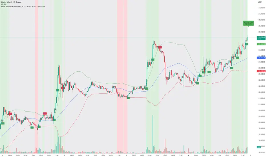 Watch how the Market Anomaly Detector (MAD) precisely captured the start of the Bitcoin breakout on the 15-minute chart — with no lag, early confirmation, and clear signals.