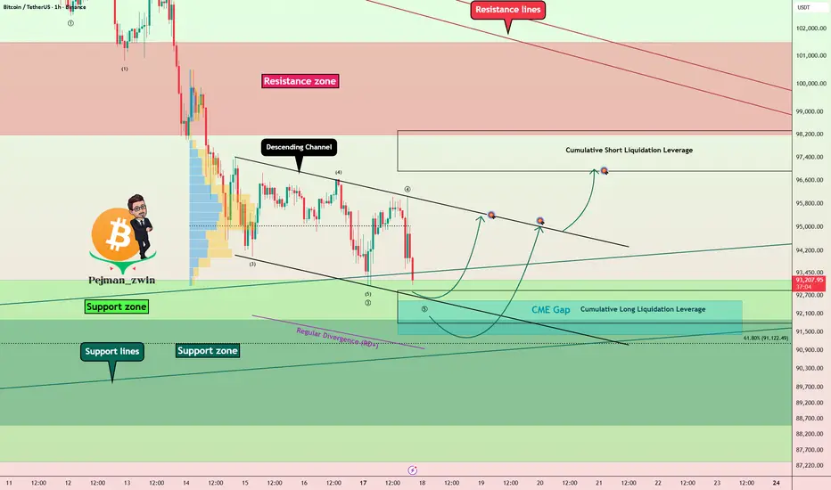 I expect Bitcoin to start rising again by entering the Cumulative Short Liquidation Leverage($92,869-$91,763) and possibly from the lower line of the descending channel.