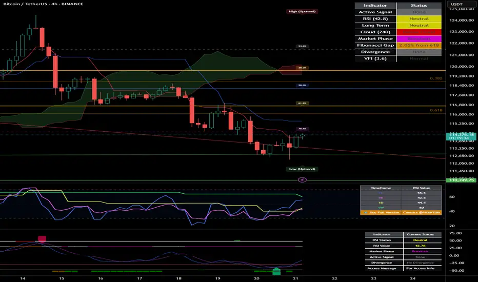 The price is currently trading below the cloud, indicating short-term bearish sentiment. However, the relatively narrow cloud formation ahead suggests potential for a breakout if Bitcoin can reclaim the $119,324-$120,176 range.