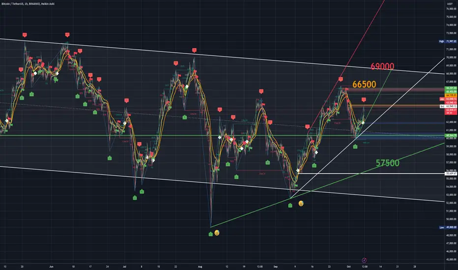This weekend we had a bearish EMA 50 - 100 crossing up to 60000 and now we have a BULLISH EMA 50 - 100 crossing that counteracts all the strength of the previous impulse in a support zone.