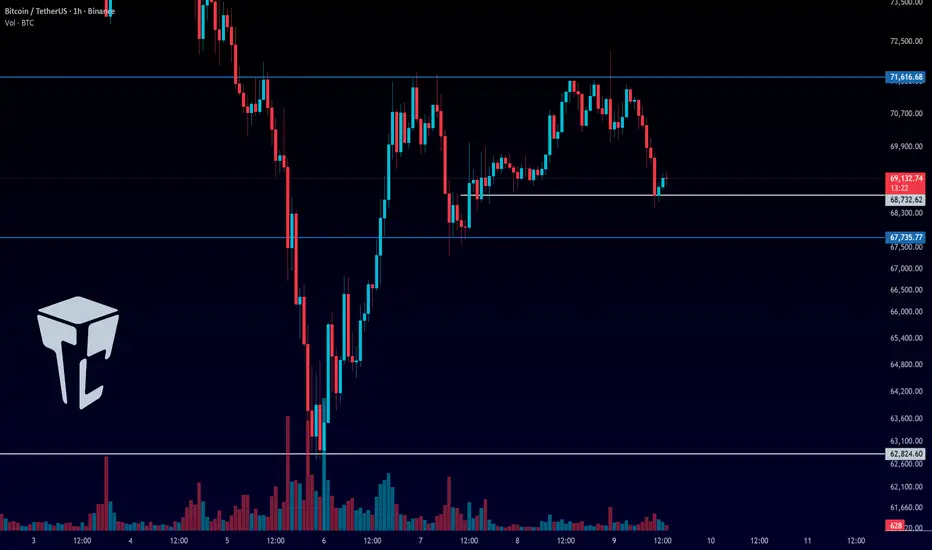 🔍 At the moment, price has reacted around 68,732, and it could now enter a ranging phase. In that case, we can look to open a short position on a break of 68,732.