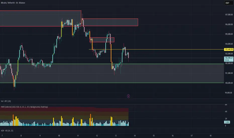 Price has now tested the seller’s mirror zone at $102,900–$103,600 and is pulling back. A repeated test of $102,000–$100,000 remains likely — this is where buyers might show strength again.