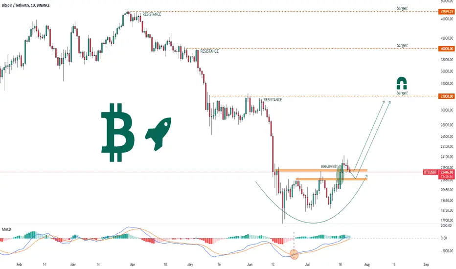 Indeed, the first resistance level 21700 has been broken, as well as the second 22500 which is now being tested, If the price rebounds from testing the areas, I think that the price will record a good rise After Bounce confirmation, the first target is 32000