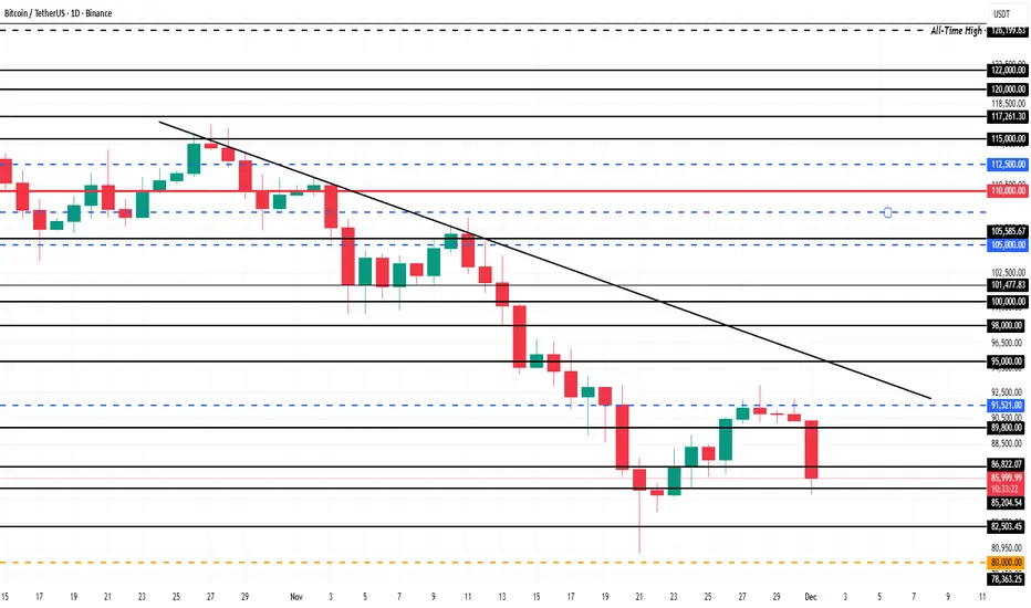 If market conditions worsen or short-term holder selling accelerates, Bitcoin could break below $85,204. A drop through this support would expose the price to $82,503 and potentially deepen losses as fear rises across the market.