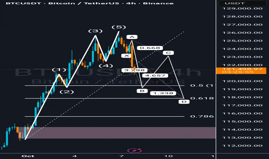 However, if Wave D breaks below the 0.786 zone (around 115K), selling pressure could extend toward the 1.272 extension (around 109K).