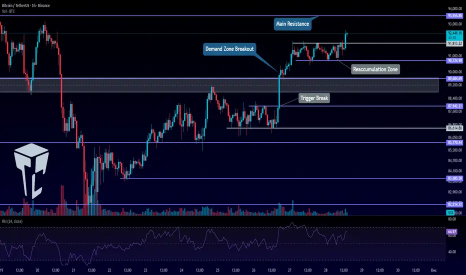 🔔 This range allowed the price to rest, and with new momentum entering the market, Bitcoin is now ready to move toward the 93,555 level.
