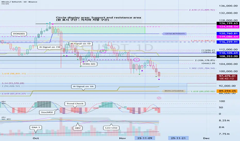 Therefore, when the price is near these ranges, you should check the movements of the StochRSI, TC, and OBV indicators to determine a response plan.