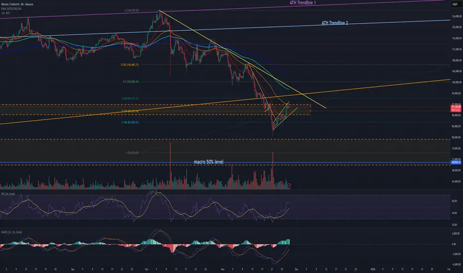 Bitcoin has been in a strong corrective phase ever since the October ATH. After breaking down from the rising structure, price has been grinding lower and finally tapped into the broader demand zone we’ve been watching for weeks.