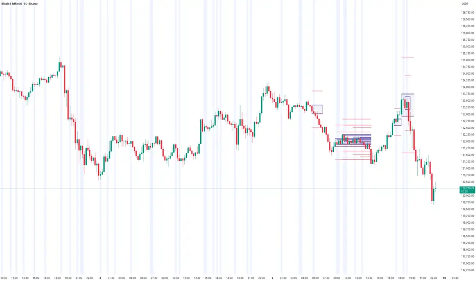 When two zones overlap, the indicator visually merges them, highlighting confluence where multiple candle ranges align — a sign of strong market memory.