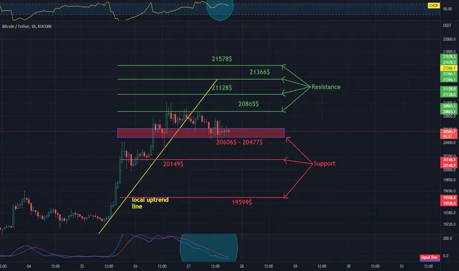 Let's start with the designation of the support line and as you can see we first have support zones from $ 20,606 to $ 20,477, if the support breaks down, the next support is $ 20,49 and $ 19,599.