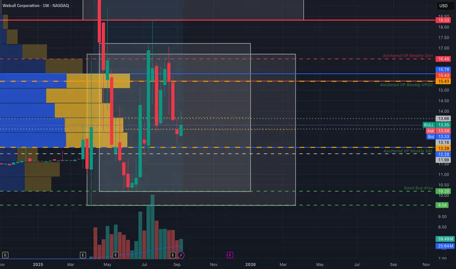 So far webull has been consolidating. I believe a hold above the VPOC (volume point of control @ $15.43), a breakout of the lower boxes and reclaim of the larger upper box around $18.33-$18.87, could see a push to the mid 20s and 30s at least.