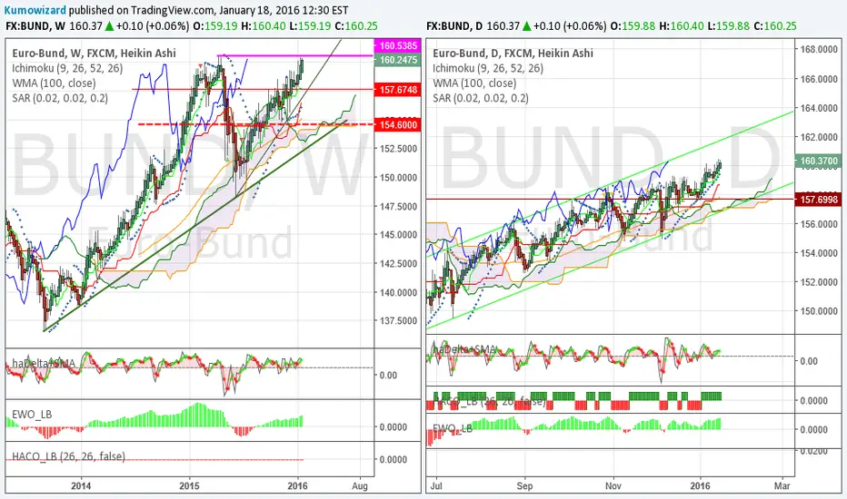 - Weekly chart closes higher above 160,55, which implies a sub 0,40 % yield on 10y German cash Bond