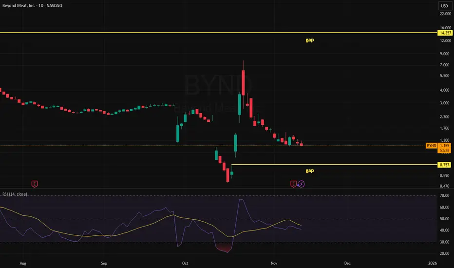BYND is frustrating all the shareholders, many of whom have been expecting short squeeze activity. Share price is still mired in a steady decline. Gaps sit at $14.35 and $0.75. It's likely the $0.75 gap fills before $14.35. Short interest reports have been in disagreement, widely, with reliable reports indicating a short interest % of 16% of float with a very low days to cover of 0.1. The shorts have covered.