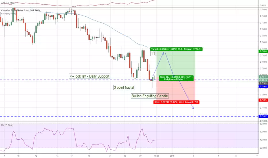 IDEA: Although CADCHF is trending down, we are looking for quick "pop" up before continuing down.