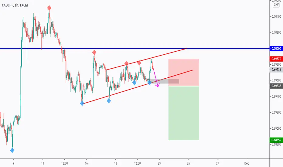 on DAILY: CADCHF is sitting around a strong resistance (and round number 0.700) in blue so we will be looking for sell setups on lower timeframes.