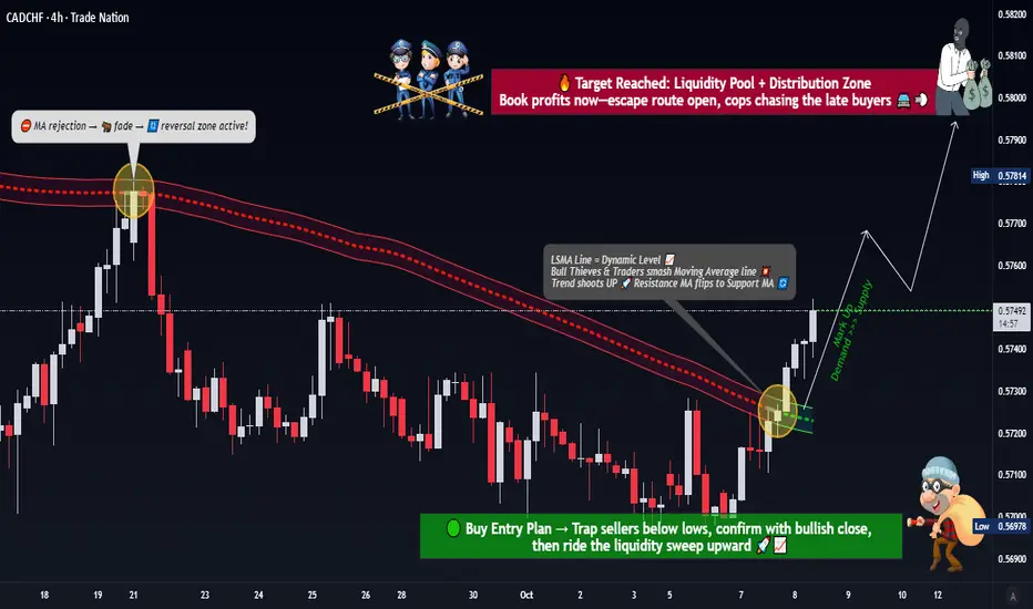 We've spotted a golden opportunity in CADCHF! The accumulation phase is complete, and the Least Squares Moving Average (LSMA) has broken out like a master thief slipping through laser security systems. The Swiss vault is looking vulnerable, and the Loonie is ready to make its move! 🍁💨