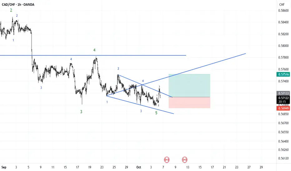 It appears that an Ending Diagonal pattern has formed at the end of the bearish trend on CADCHF (1-hour timeframe), indicating a potential trend reversal and the beginning of a new bullish phase.