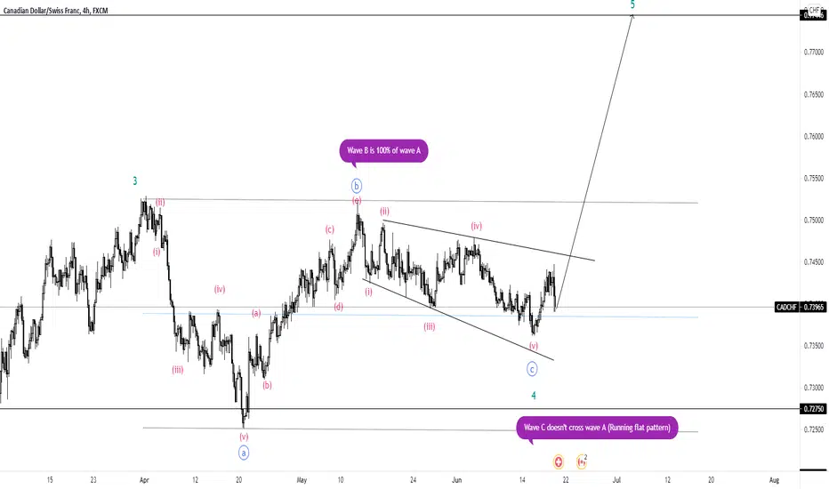 Wave 4 zone B retracement at 100% of wave A corrective lower timeframe