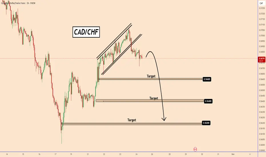 CADCHF Forms Bearish Channel- Sellers Target 0.5620 Zone