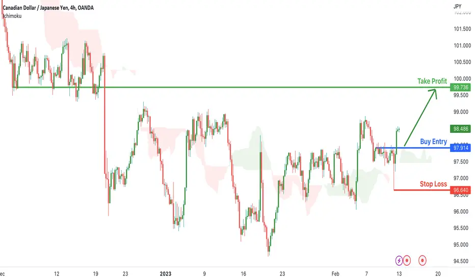 Looking at the H4 chart, my overall bias for CADJPY is bullish due to the current price being above the Ichimoku cloud , indicating a bullish market.