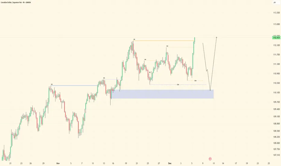 CADJPY remains bullish. HTF structure is clean, visual, and directional — price continues to respect bullish order-flow, confirming upward intent.