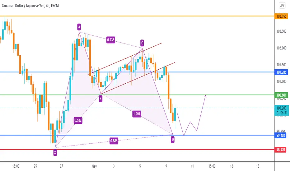 After a flag pattern and the big sell taken yesterday with a 100 pips profits, the price is almost to a support found around 99.400. I'm expecting a long position at that price, but I need price action reaction on that zone that confirms to be a support. If traded, target would be 100.600.