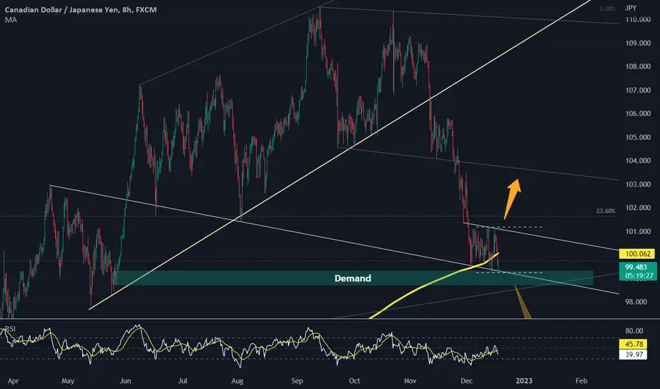 CADJPY is in a flag pattern. We are waiting for an escape candle with Propper momentum ether up above 101.212 to continue bullish or below 99.254 to fall bearish.
