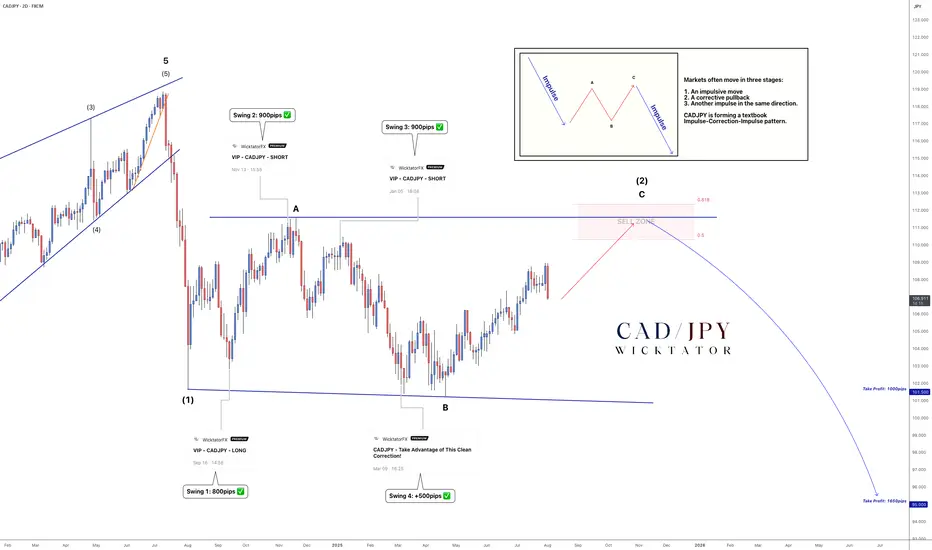 We’ve been tracking CADJPY for years, and price has followed Elliott Wave structure almost perfectly.
