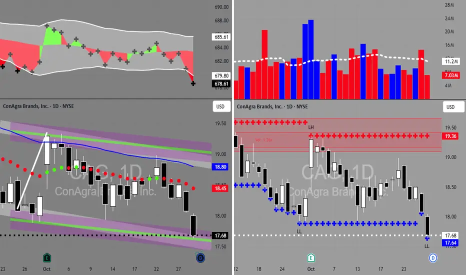 Money flow momentum is spiked negative and under bottom of Bollinger Band