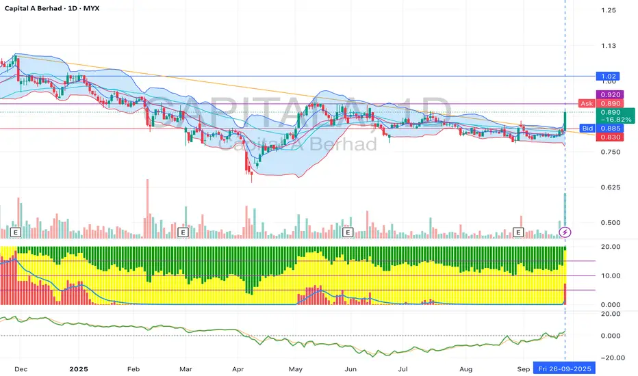 You can see that the counter has just Breakout and trying to move upward.Let see will it change trend or not.BO:0.92,SL:0.83,TP:1.02.