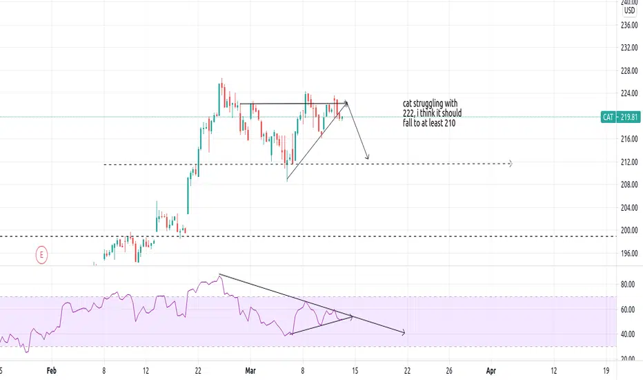 cat remains weak, in my opinion, should soon fall further , stop loss above 224 a solid close on the 2hr candles