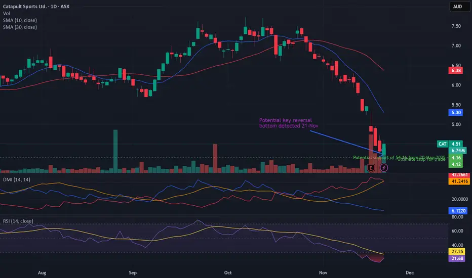 CAT (and indication that this trade is an absolute 'no-go') is any trade below the low of the signal day of 21st November (i.e.: any trade below $4.13).