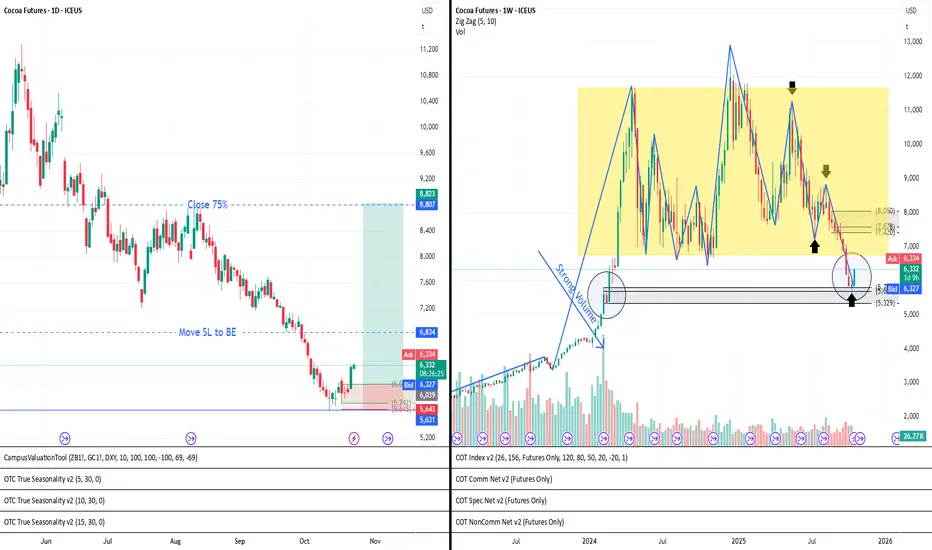 Cocoa reacted from a previous demand zone (Rally-Base-Rally, wider version) and it looks like it may be forming a Drop-Base-Rally pattern. This will be confirmed or invalidated with the close of this week.