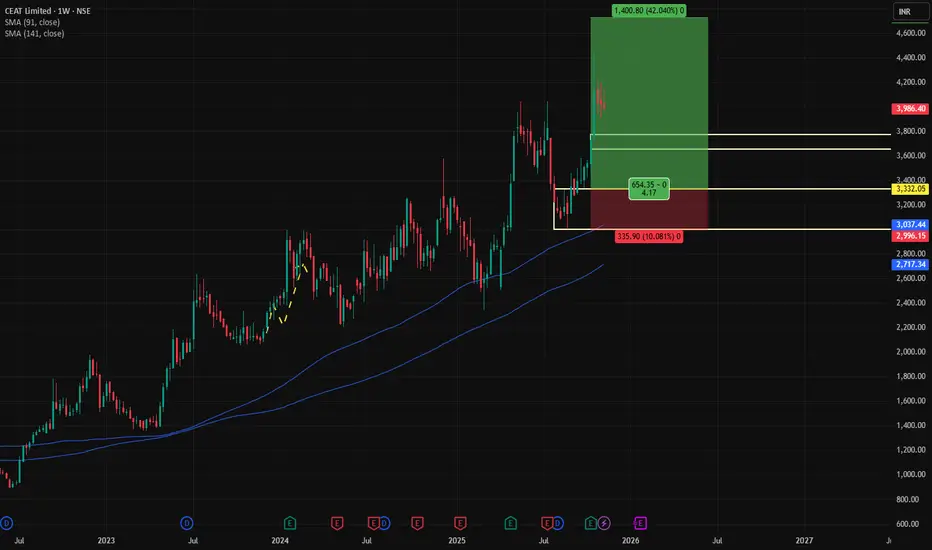 CEAT is in a multi-timeframe confirmed uptrend with strong demand across all TFs: