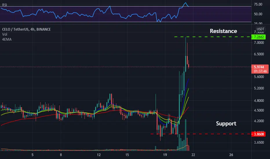 CELO coin price traded at $5.97 with a gain of 32% in the last 24-hour and 35.31% up in the weekly time frame. Furthermore, CELO bounced from the support of $3.85. In contrast, the market capitalization stands at $1.22 billion. Technically, investors can perceive a positive crossover in the EMA, and the price is above all the EMA. RSI index showcases a downward slope. Moreover, the price movement can be towards the resistance of $7.26 in future trading sessions.