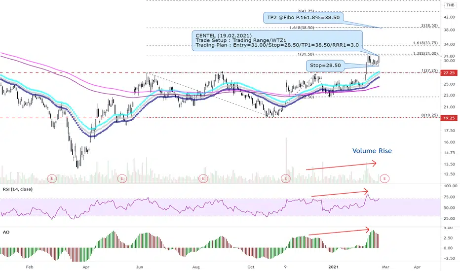 After CENTEL and its WTZ1 Setup has tested the 1st TP (Fibo E.138.2%). it's consolidating for a few period and rose with volume. We expect it can rise to the next TP (Fibo E.200%) which equal to the height of the previous range.