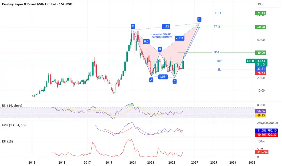 On monthly TF, potential SHARK harmonic pattern has been drawn.