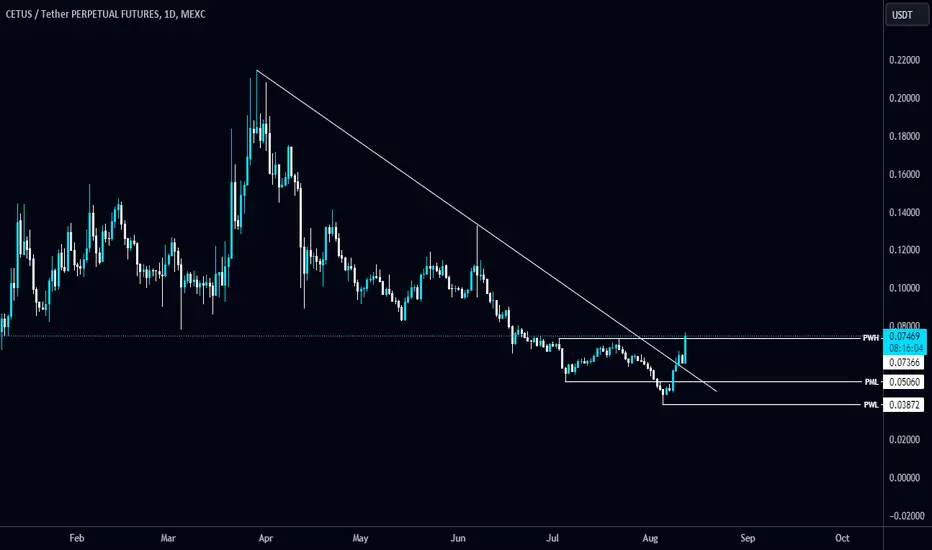 $CETUS breaking the PMH $0.07366. Wait for BO and holding above as a support to remain bullish. The local support level is PML $0.0506.