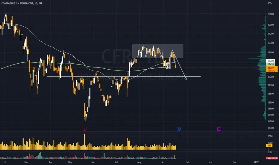 CFR has broken down from a consolidation box and looks to move lower down to the R178.00 level