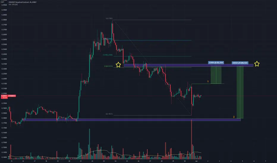 If you place a fibo on the downswing, you will see that the 50 fibo area is itself a heavy supply area, so you can set the target in the same area that I marked with a gold star.