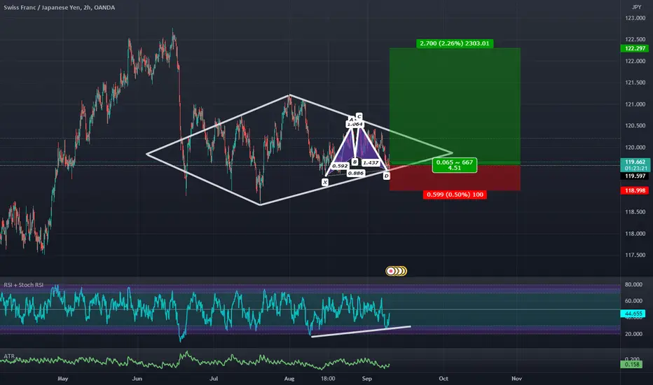 We got a Bullish Divergence on the two hour at the pcz of a Bullish Shark inside of a diamond pattern.